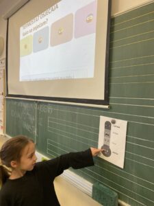 U 1. razredima učenici su s učiteljicom informatike kroz temu emocije i ekrani razgovarali o tome kako sadržaji na ekranima mogu u nama pobuditi različite osjećaje – sreću, tugu, ljutnju i strah. Svoje su emocije prikazivali na termostatu emocija, poslušali priču N@ica i Čarobni ekran, a zatim kreativno izražavali osjećaje crtajući ih u prazno srce koristeći boje, simbole i smajliće. Aktivnosti su zaokružene zabavnim Kahoot kvizom.