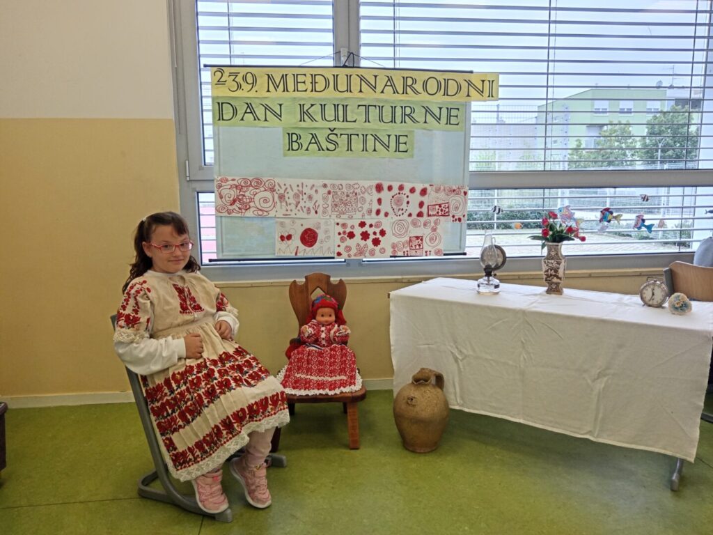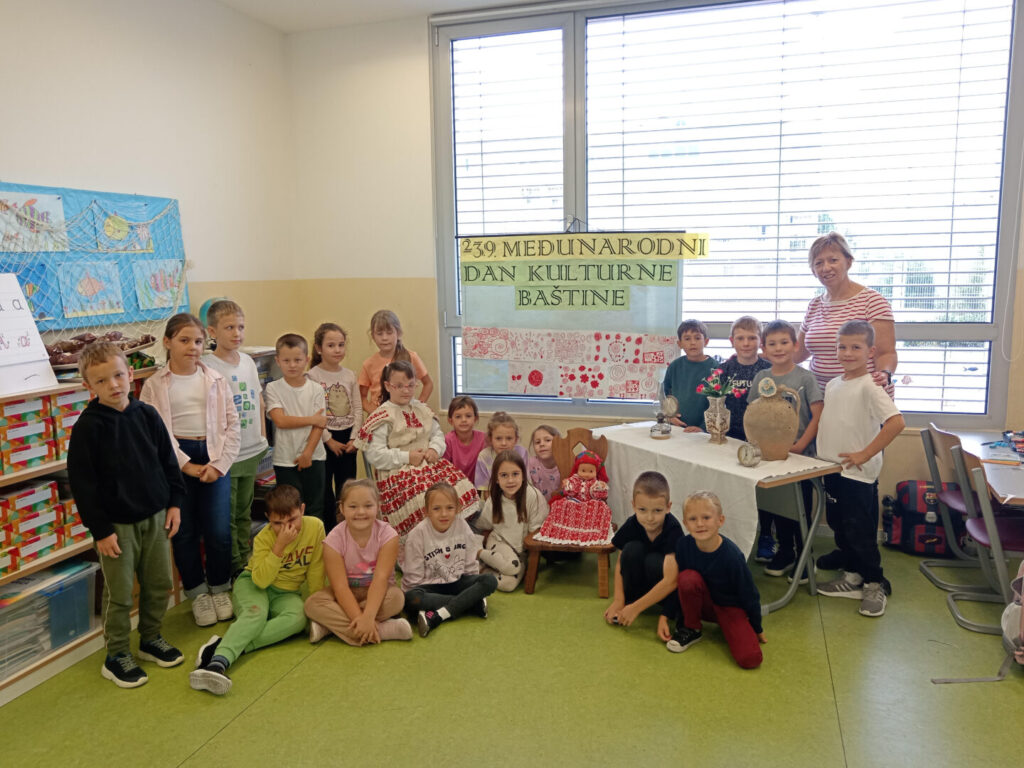 Nakon kratkog upoznavanja  pojmova kulturna baština, tradicija i običaji učenici su mogli uživo vidjeti odjeću te isprobati narodne nošnje našeg zavičaja. Važnost očuvanja tradicije, kulture i običaja za najmlađe naraštaje je poseban trenutak i svojim pitanjima i ozarenim licima otkrivaju koliko ih raduje sam pojam da je nešto staro 120 godina. Upoznavanjem dijelova odjeće učenici postavljali pitanja i divili se detaljima koji se nalaze na nošnji. Za najmlađe je jako važno od najranije dobi pripovijedati i govoriti o kulturi i običajima  te ih upoznavati sa pojedinostima iz  povijesti našeg zavičaja  i Domovine. Na kraju su likovnim izričajem,  crtanjem kadra, narodnih nošnji napravili svoj detalj narodne nošnje.