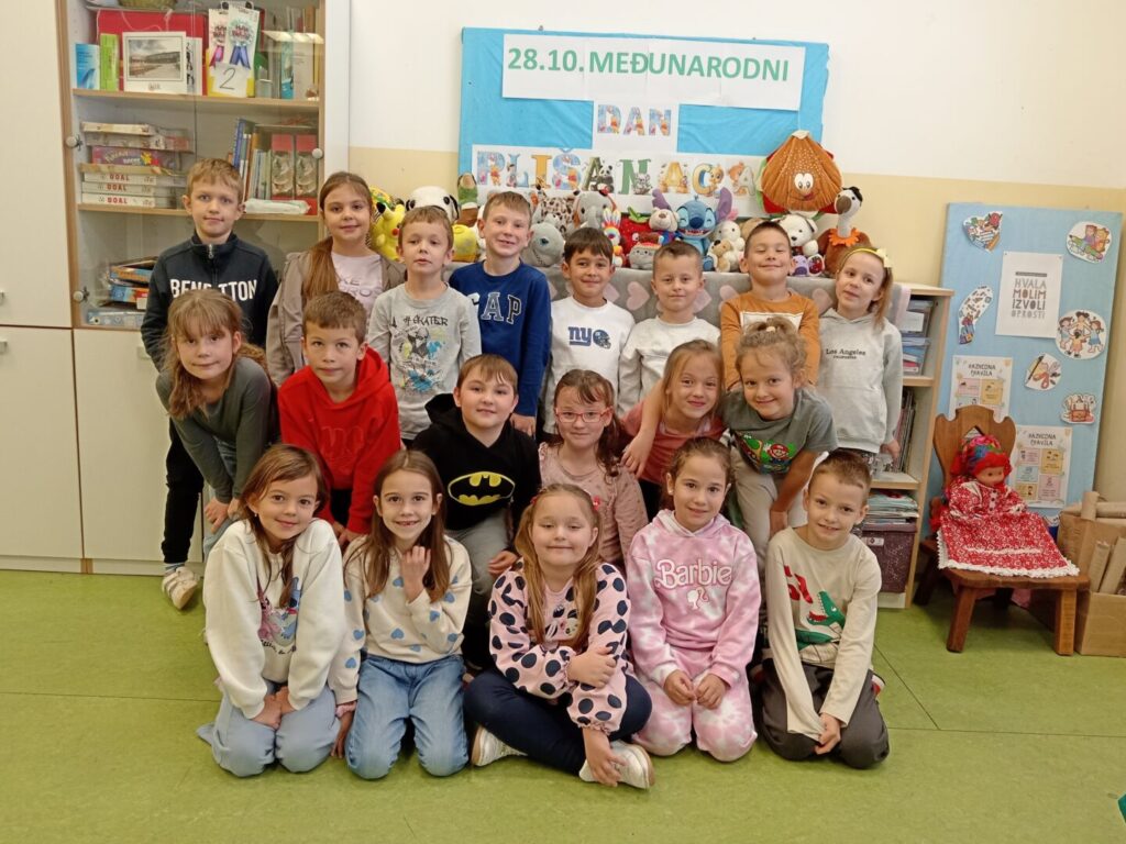 Učenici 1.a i 1.c razreda obilježili su 28.10. Međunarodni dan plišanih igračaka. Kako su nastale plišane igračke i povijesni razvoj proizvodnje plišanih igračaka učenicima je bilo zanimljivo poslušati i pogledati kako su igračke izgledale kad su njihovi djedovi i bake bili mali. Učenici su također mogli uočiti kako se sve događalo u Egiptu i kako su lutke i plišane igračke došle u Europu i na ostale kontinente. Svaki učenik donio je svoju plišanu igračku te smo izradili iskaznicu za plišanca kojeg je donio. Učenici su bili vrlo aktivni i vrlo brzo napravili iskaznice kojima smo uredili naš pano u učionici. Sve učenike na osobit način razveselilo je nekoliko plišanaca u učionici koje su donijele učiteljice. Sva djeca vesele su igranju i to im je najdraži dio dana.