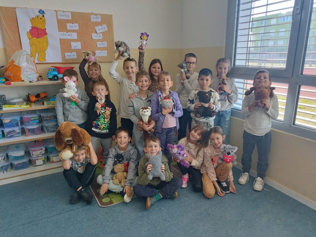 Učenici 1.a i 1.c razreda obilježili su 28.10. Međunarodni dan plišanih igračaka. Kako su nastale plišane igračke i povijesni razvoj proizvodnje plišanih igračaka učenicima je bilo zanimljivo poslušati i pogledati kako su igračke izgledale kad su njihovi djedovi i bake bili mali. Učenici su također mogli uočiti kako se sve događalo u Egiptu i kako su lutke i plišane igračke došle u Europu i na ostale kontinente. Svaki učenik donio je svoju plišanu igračku te smo izradili iskaznicu za plišanca kojeg je donio. Učenici su bili vrlo aktivni i vrlo brzo napravili iskaznice kojima smo uredili naš pano u učionici. Sve učenike na osobit način razveselilo je nekoliko plišanaca u učionici koje su donijele učiteljice. Sva djeca vesele su igranju i to im je najdraži dio dana.